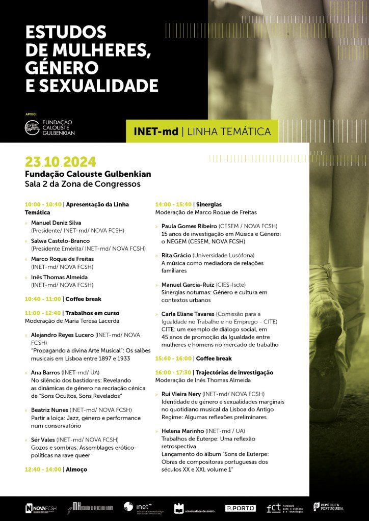 On October 23, 2024, I had the pleasure of speaking at the launch of the thematic line Women’s, Gender and Sexuality Studies at INET-md. The event took place at the Calouste Gulbenkian Foundation in Lisbon (Room 2, Congress Area), and brought together researchers, artists, and scholars engaged in critical and interdisciplinary approaches to gender and sexuality.