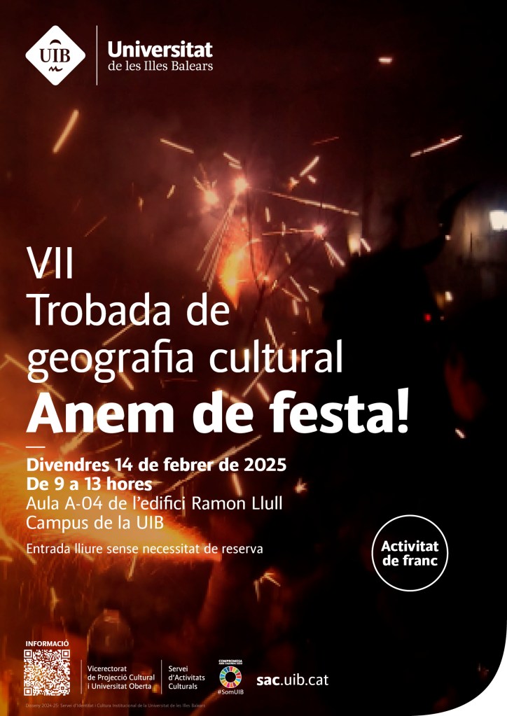 On February 14, 2025, I was honoured to speak at the VII Trobada de Geografia Cultural, hosted by the Universitat de les Illes Balears under the vibrant theme “Anem de festa!” (“Let’s party!”). This annual gathering brings together researchers, students, and cultural practitioners to reflect on the spatial, symbolic, and social dimensions of festivity and popular culture.