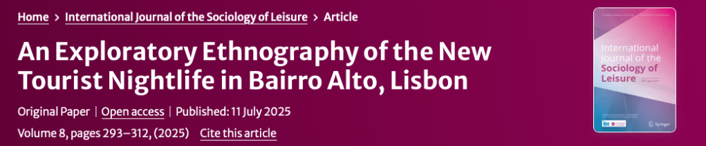 I am pleased to share our latest article, “An Exploratory Ethnography of the New Tourist Nightlife in Bairro Alto, Lisbon”